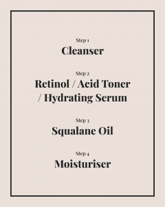 I personally find squalane a little too heavy for my morning routine, so I reserve it for nighttime. After applying my serums and treatments, I follow up with squalane before sealing everything in with my moisturiser. It’s been a game-changer for my post-retinol or exfoliated skin!