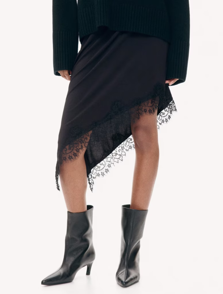 Soft asymmetry and delicate lace trims are appearing across skirts, slip dresses and longer tops this spring. I’ll admit, it took me a while to warm up to this one. Asymmetric hems remind me of my late teens and early twenties, and part of me wishes I’d held onto a few of those pieces instead of assuming they were gone for good.