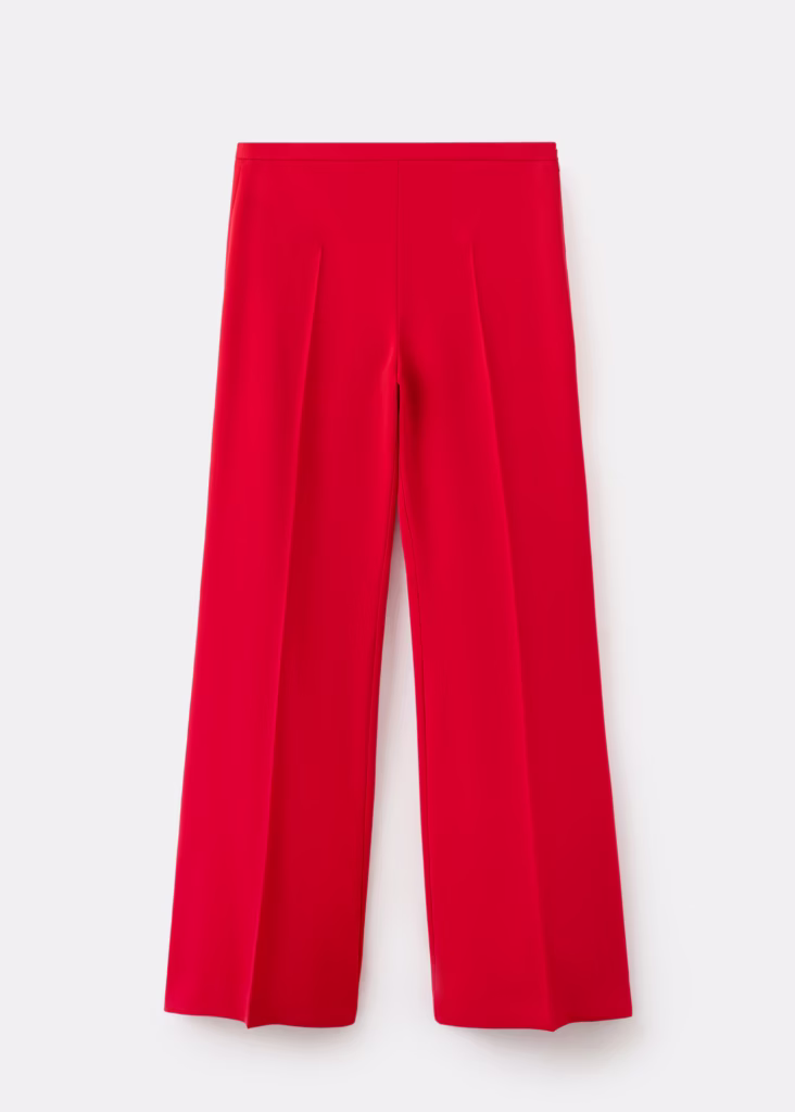 My top picks: Red knit (H&M), Blue jacket (Everlane), Yellow knit (Everlane), Red trousers (Mango).