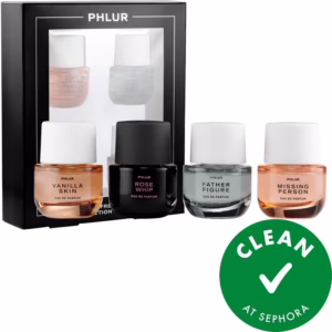 Four clean, modern fragrances — Missing Person, Vanilla Skin, Rose Whip, and Father Figure — in one beautifully boxed set. A thoughtful way to introduce someone to the brand’s viral scents.